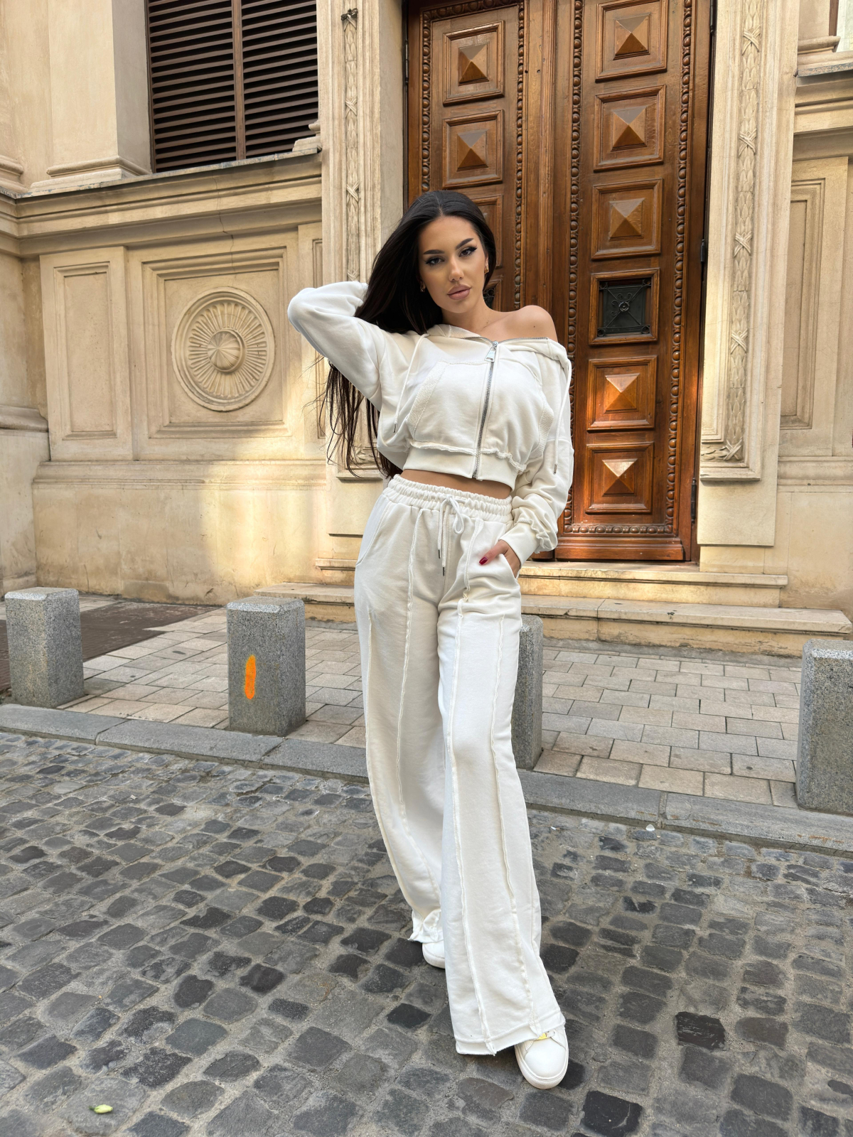 Compleul Vibe Alb Două Piese emană eleganță minimalistă și rafinament casual.